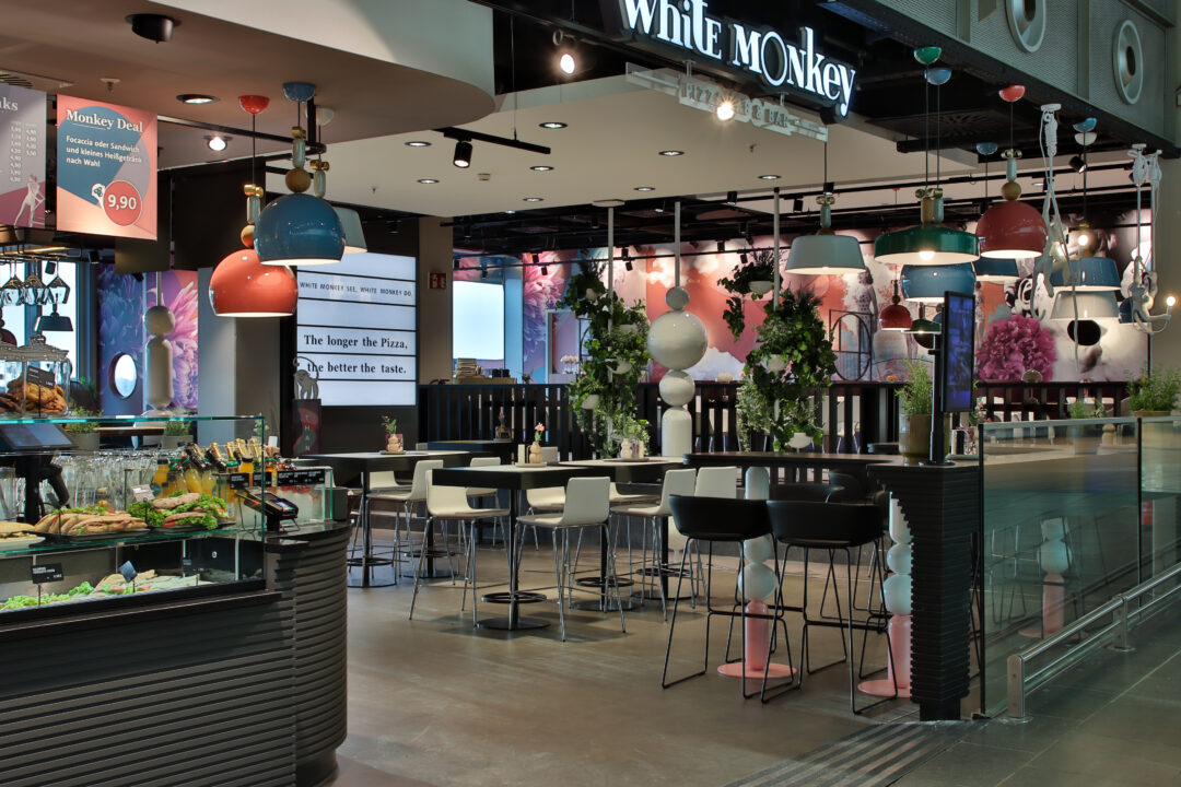 Im laufenden Flughafenbetrieb wurden vier bestehende Flächen modernisiert und an neue gastronomische Konzepte angepasst – inklusive Neuplanung von Lüftungs-, Sanitär- und Elektroinstallationen.